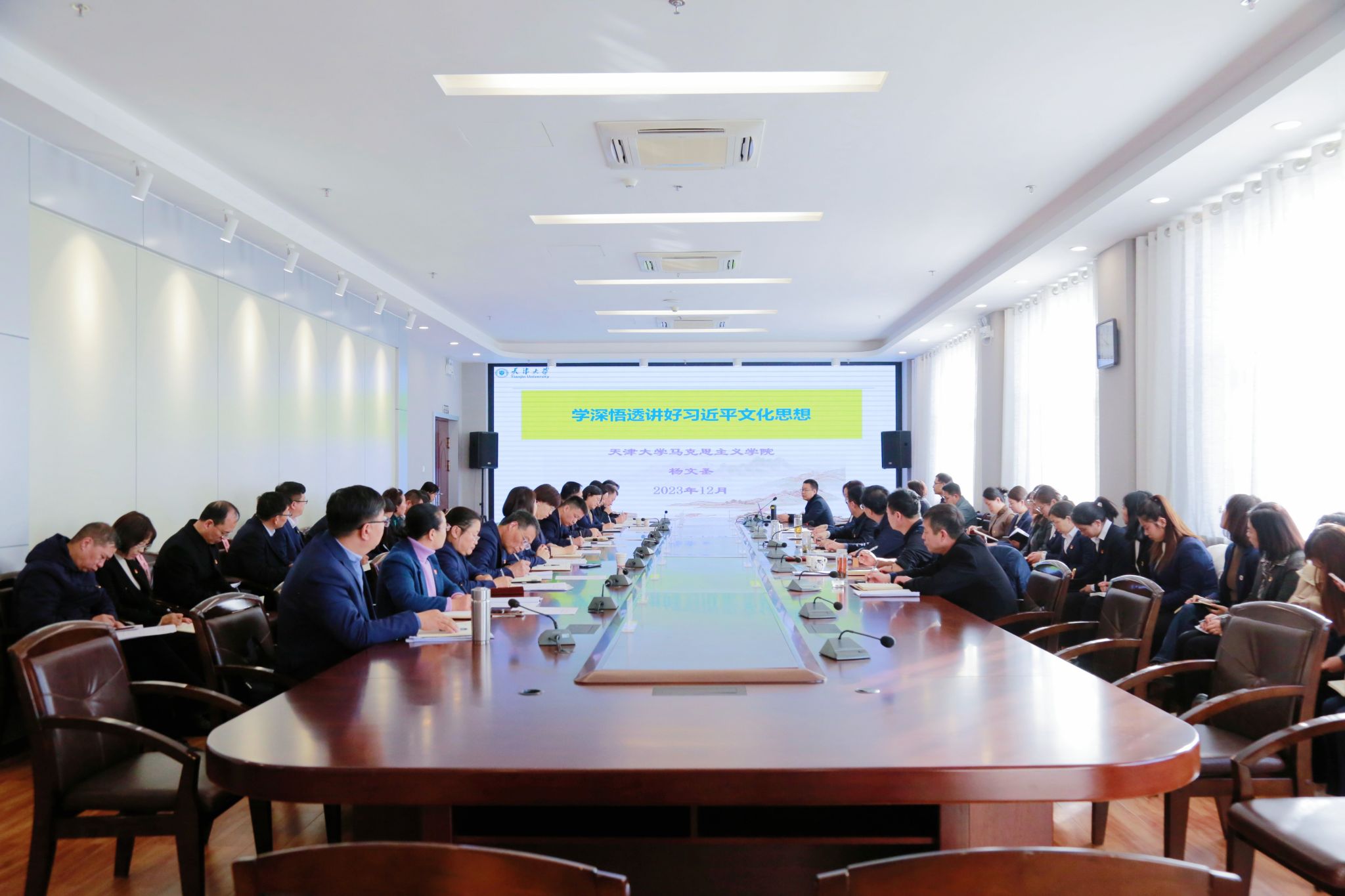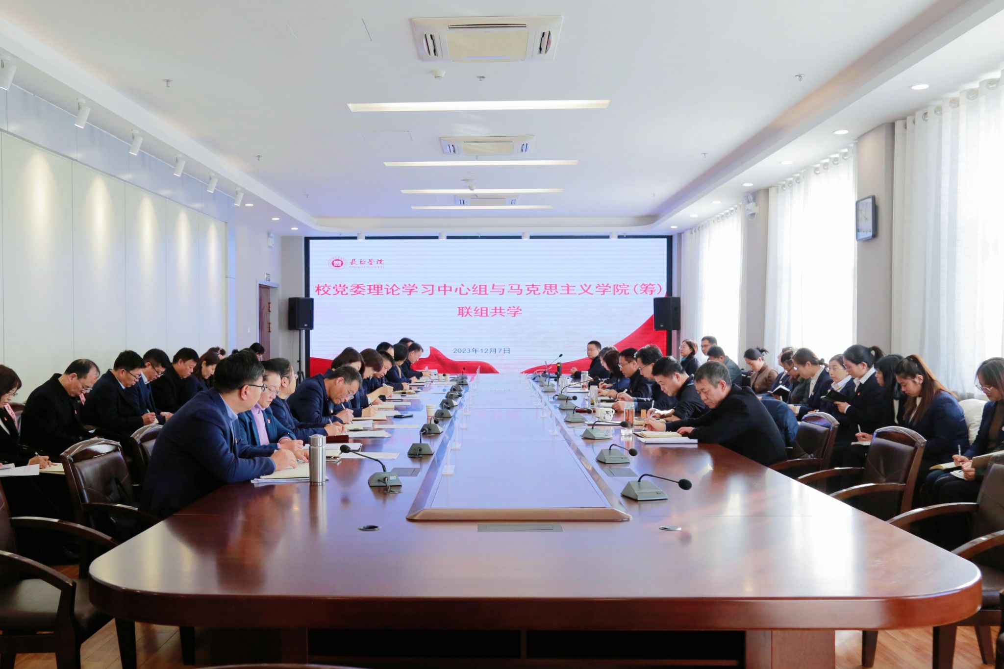 12月7日,校党委与马克思主义学院党委开展理论学习中心组联组共学(扩大)学习会,深入学习习近平文化思想。天津大学马克思主义学院教授杨文圣作专题辅导报告。党委副书记、校长曹景川主持会议。
