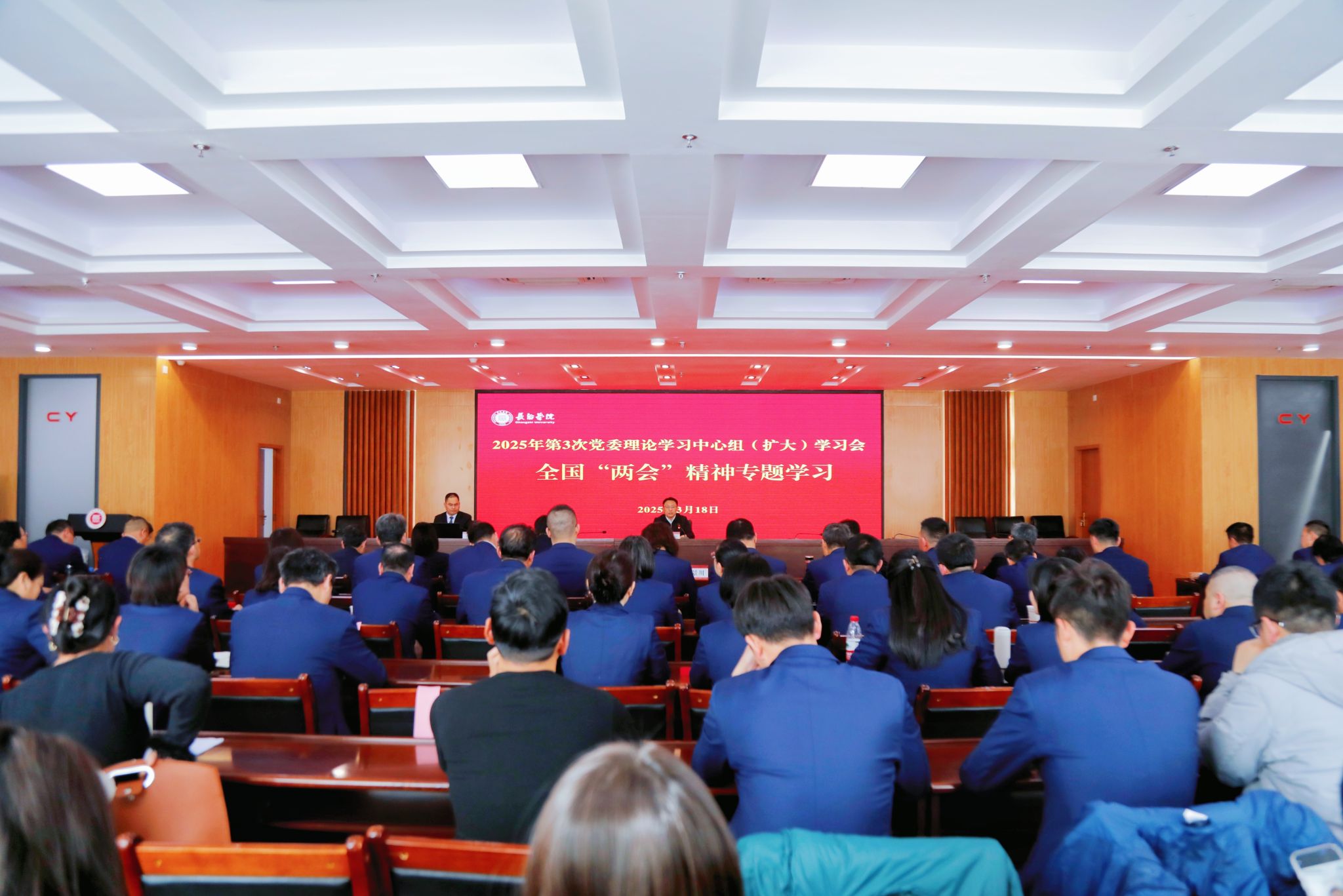 3月18日下午,学校召开2025年第三次党委理论学习中心组(扩大)学习会,专题学习习近平总书记在全国两会期间重要讲话精神和全国两会精神。全体校领导、处级以上干部、辅导员代表、教师代表和学生代表参加。党委书记曹景川主持会议并部署全校贯彻落实工作。