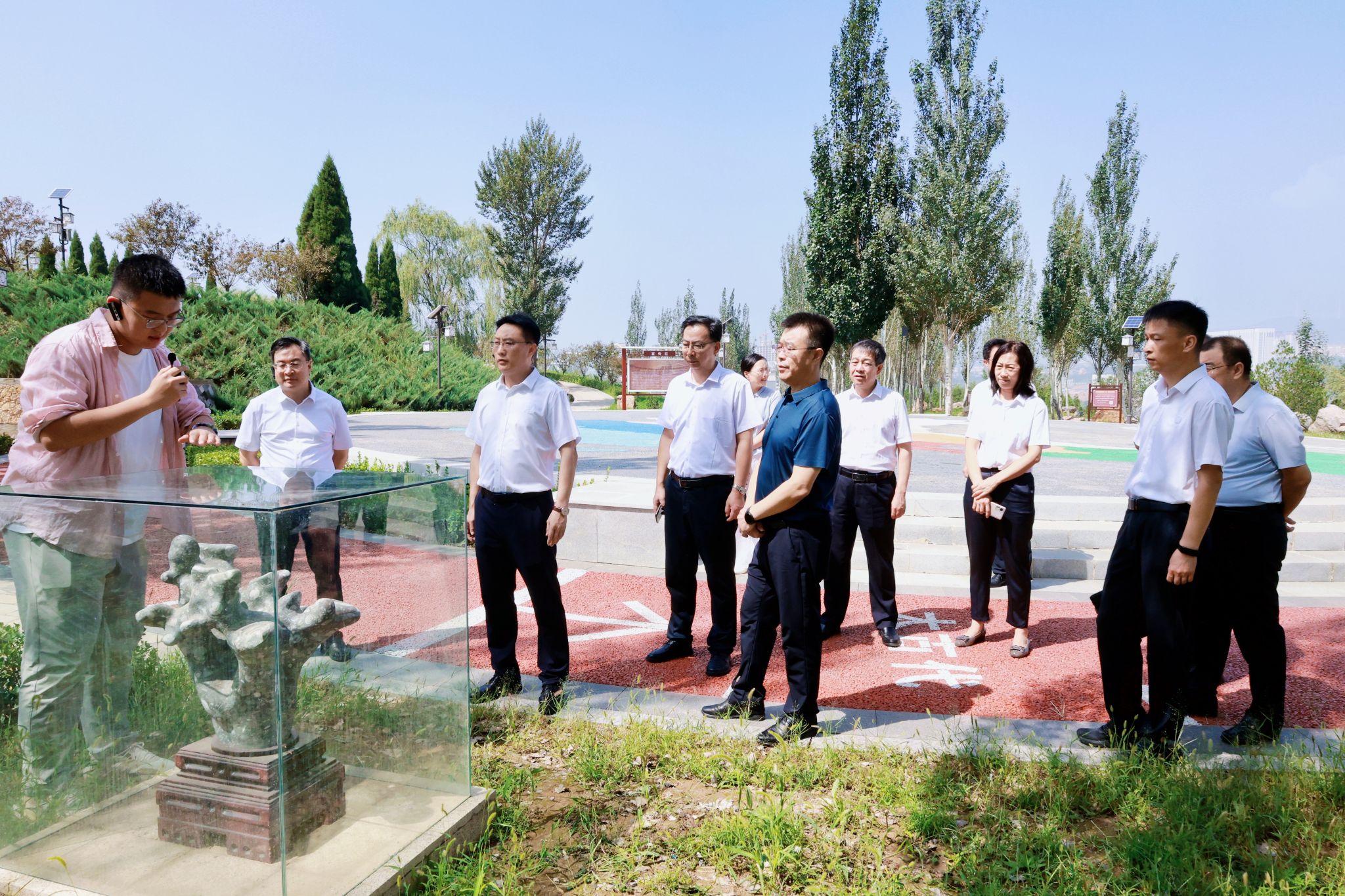 座谈会后,考察组一行实地调研了山西工程技术学院校史及应用型办学展厅、煤矿实景教学培训基地、马克思主义学院和地质文化园等地。