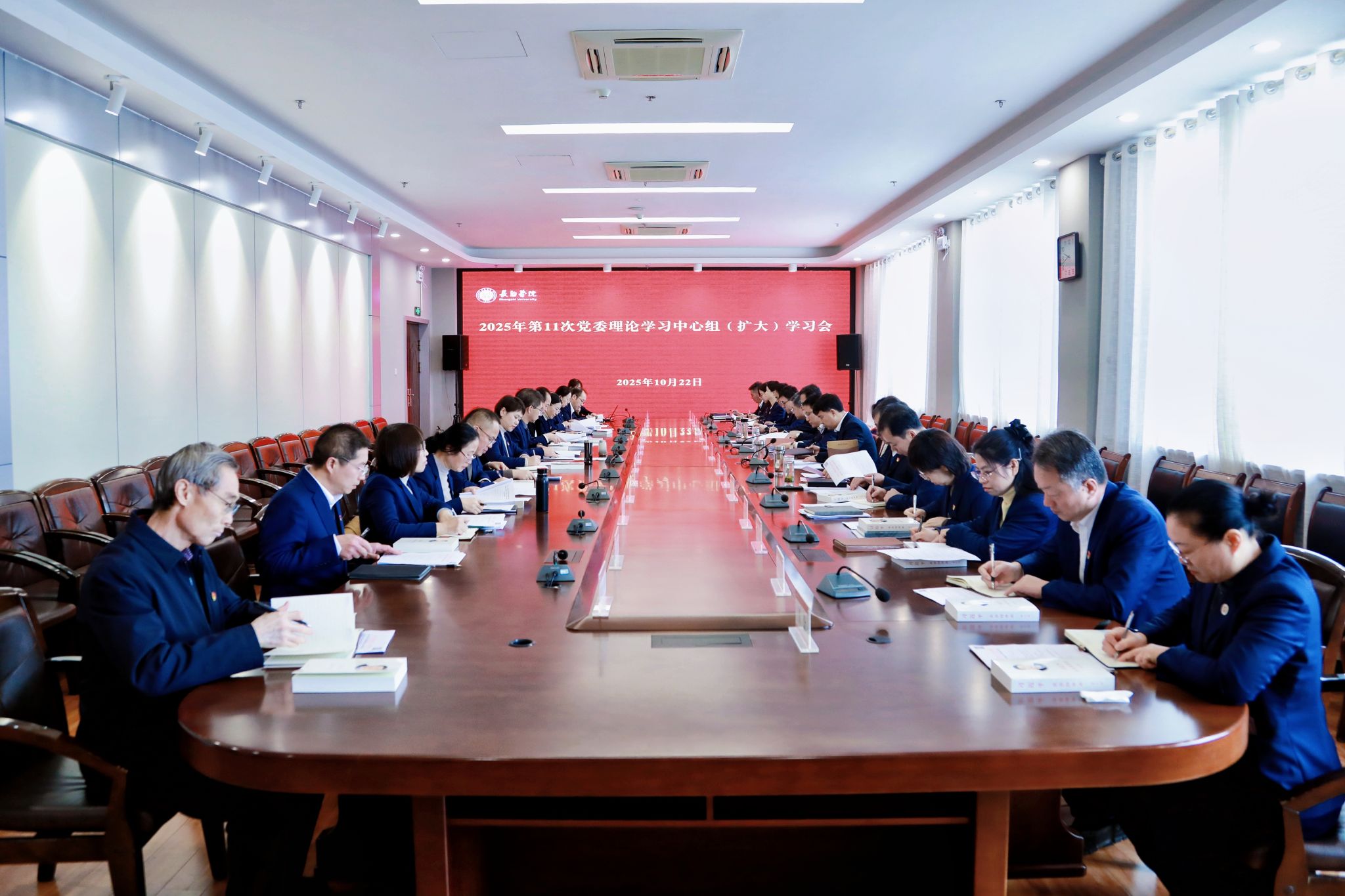 10月22日上午,学校召开2025年第十一次党委理论学习中心组(扩大)学习会。全体校领导、党务部门负责人、各二级党组织书记参会。党委书记曹景川主持会议并讲话。