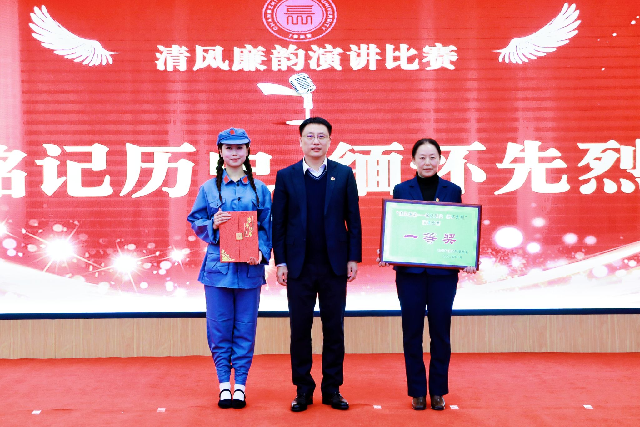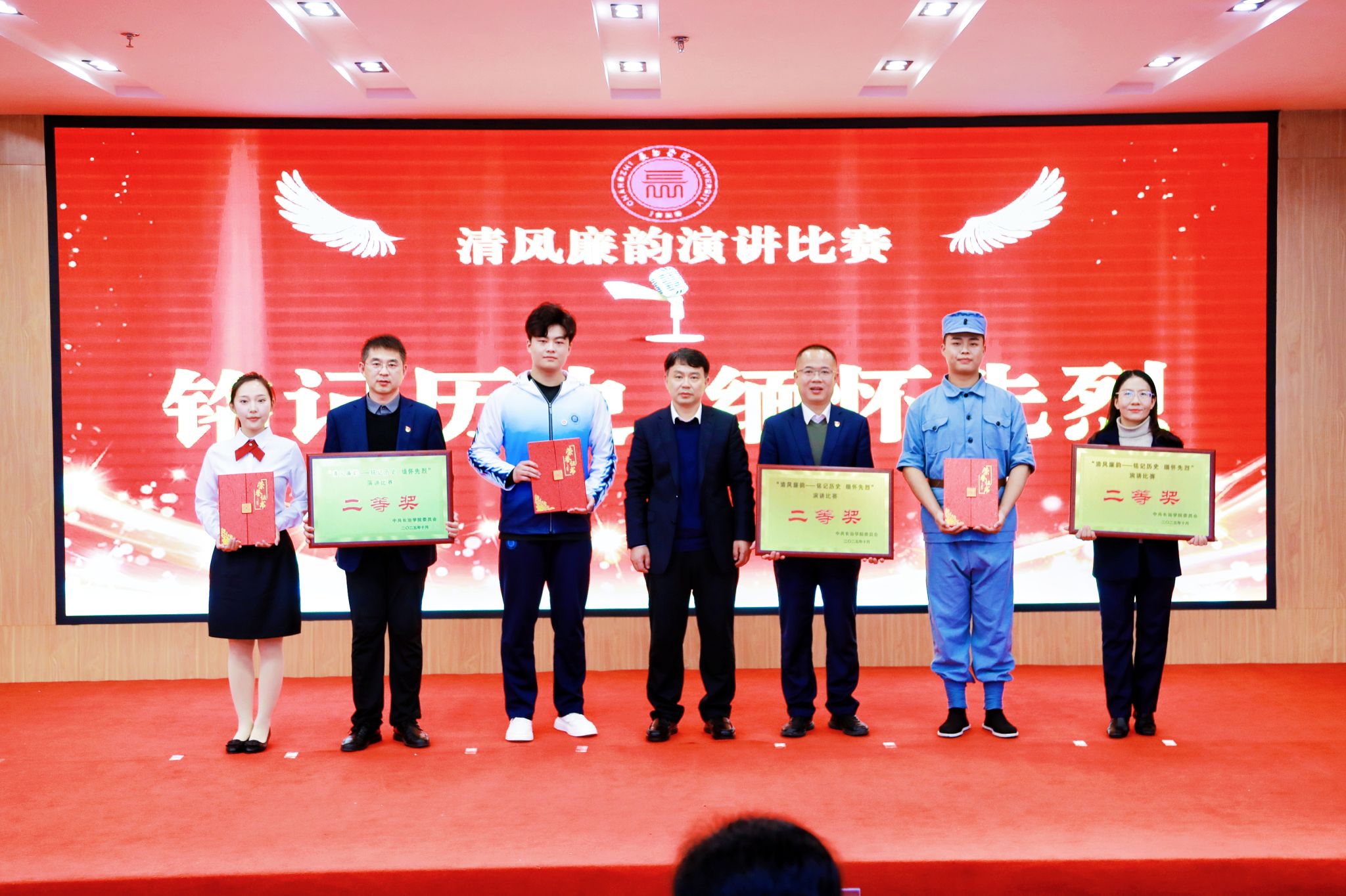 校党委书记曹景川在点评讲话中指出,本次演讲比赛主题鲜明、立意深远,参赛选手以充沛的情感、生动的语言讲述了一个个可歌可泣的革命故事和清正廉洁的时代篇章,展现了新时代青年师生坚定理想信念、追求崇高品格的精神风貌。他强调,铭记历史、缅怀先烈,不仅是一次精神的洗礼,更是一场信仰的淬炼。要通过学习英烈事迹、弘扬清廉之风,把红色基因和廉洁文化融入日常学习、工作和生活中,真正做到以史明志、以廉修身、以行践学。