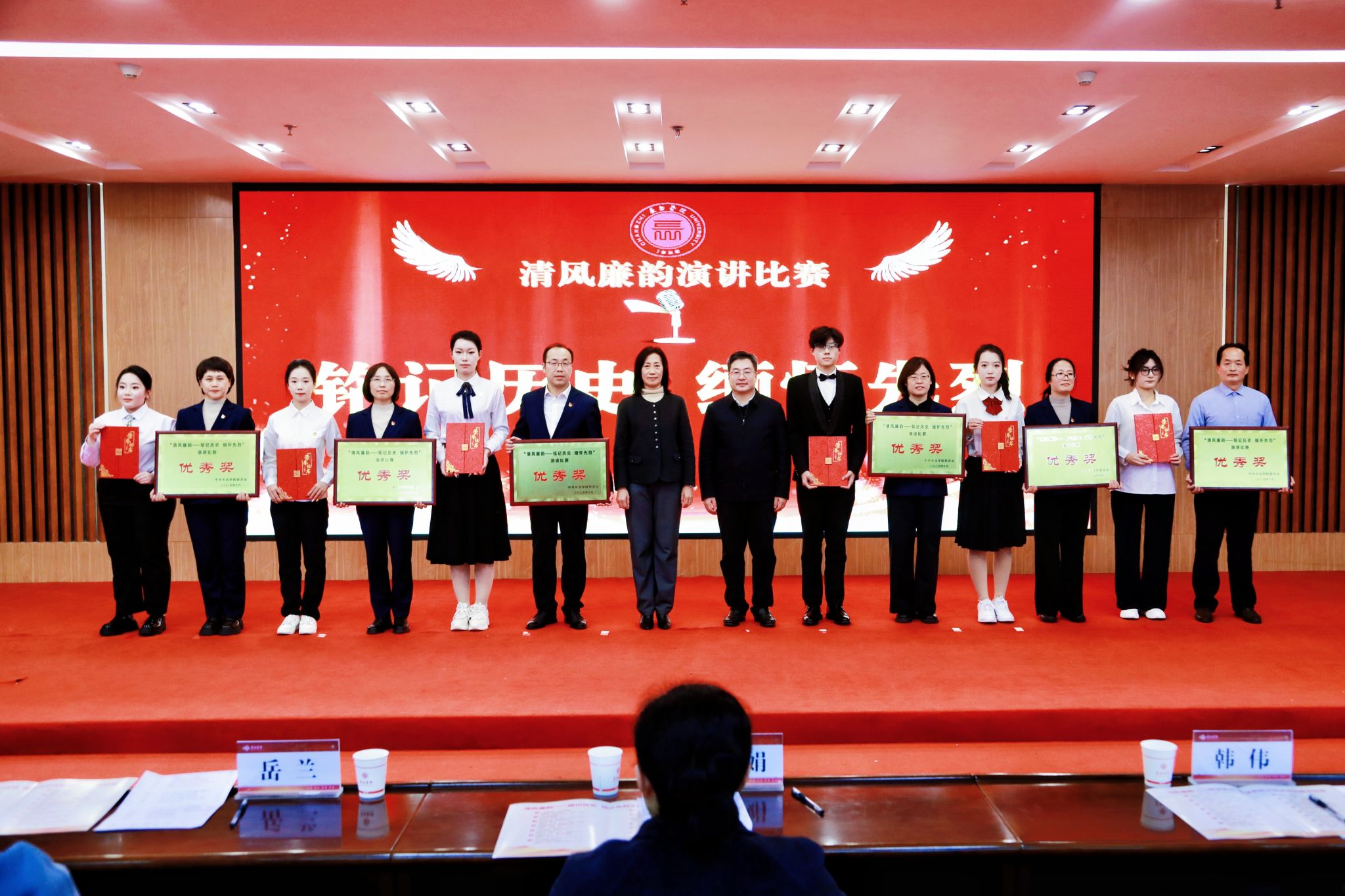 各代表队师生携手登台、紧扣主题,以真挚的情感、鲜活的事例和生动的语言,声情并茂地讲述了理想信念、责任担当与清廉自守的力量。演讲或慷慨激昂,或娓娓道来,感染了在场的每一位听众,赢得阵阵掌声。