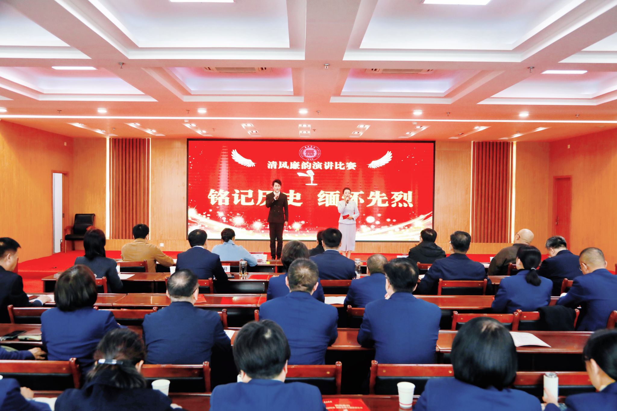 10月21日下午,beat365在北校区1号教学楼一号会议室举办“清风廉韵 铭记历史 缅怀先烈”主题演讲比赛。校领导曹景川、马立峰、史晓东、焦雨、王志军出席活动。长治医学院纪委副书记郭红娟,长治新闻网、“学习强国”长治运维中心总编辑岳兰,长治广播电视台全媒体中心主任、长治市记协副主席韩伟,长治市文明办党办负责人李剑,长治广播电视台主持人王晓晨担任评委。来自各院系的15支代表队同台竞技,以铿锵之声讴歌英烈事迹,用真挚情感诠释清正廉洁之风。
