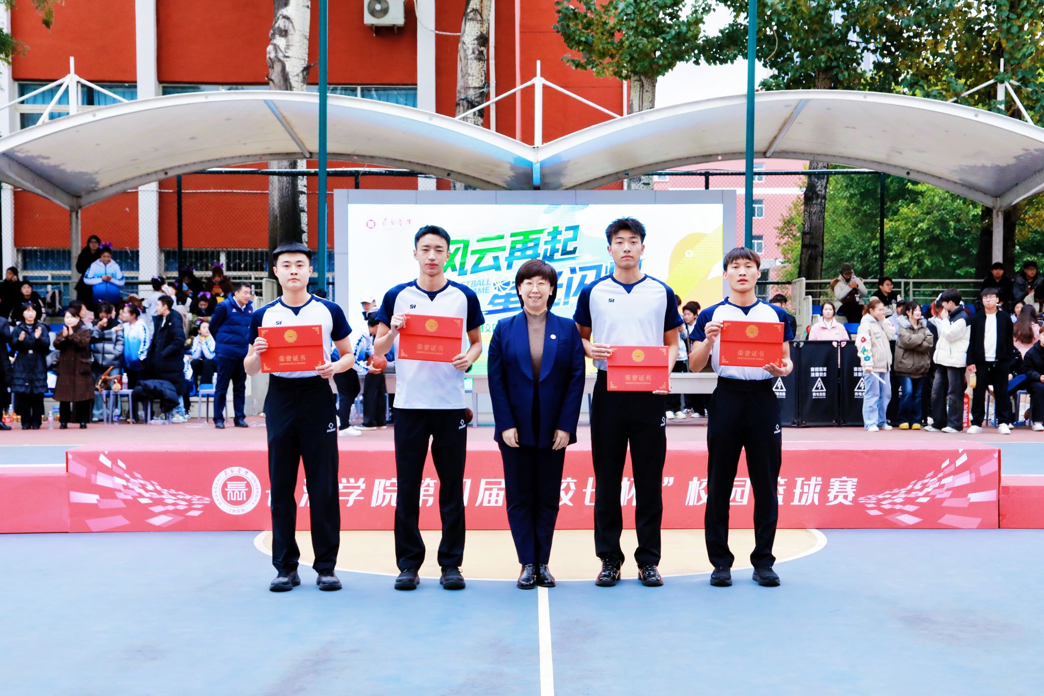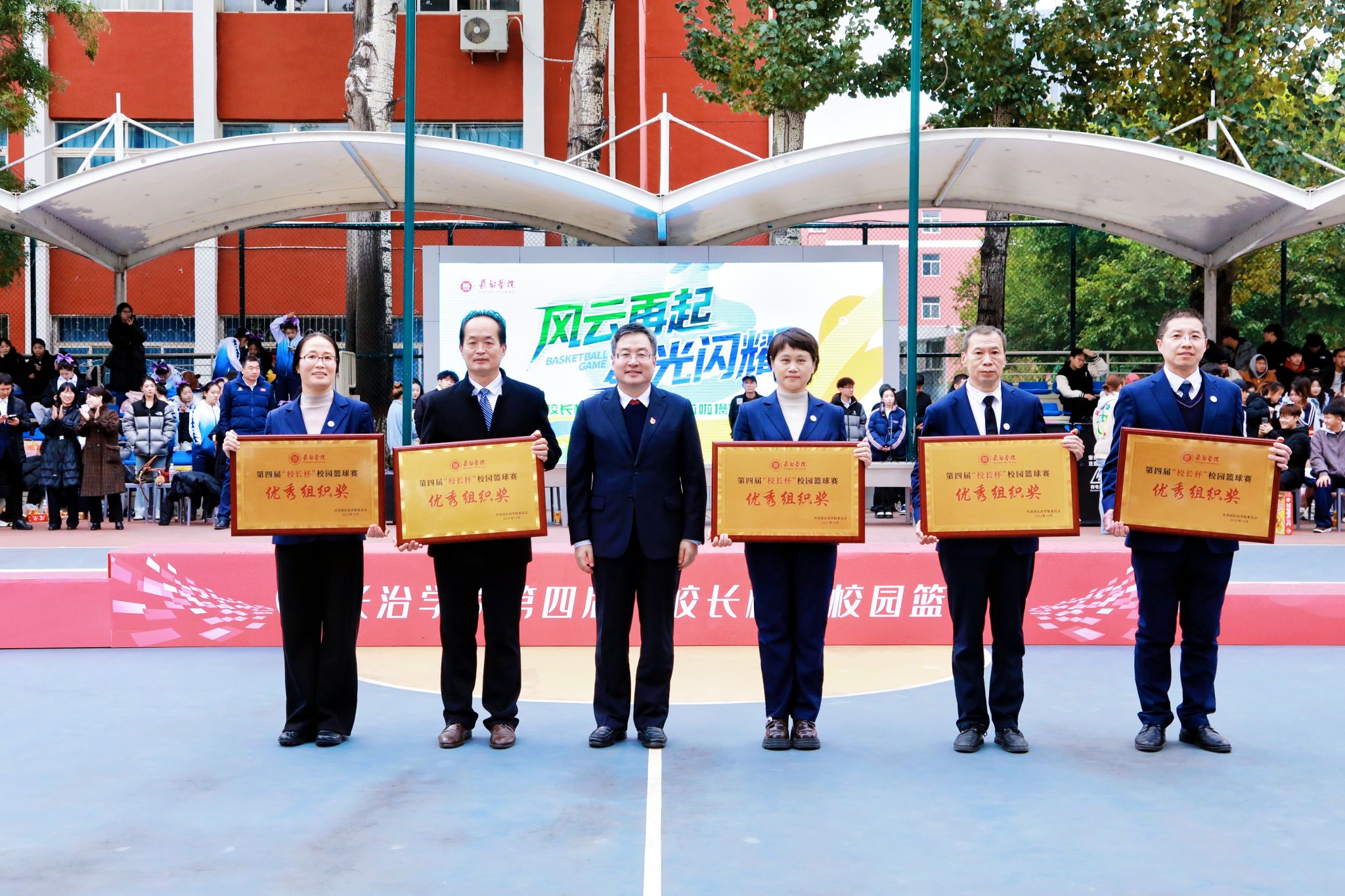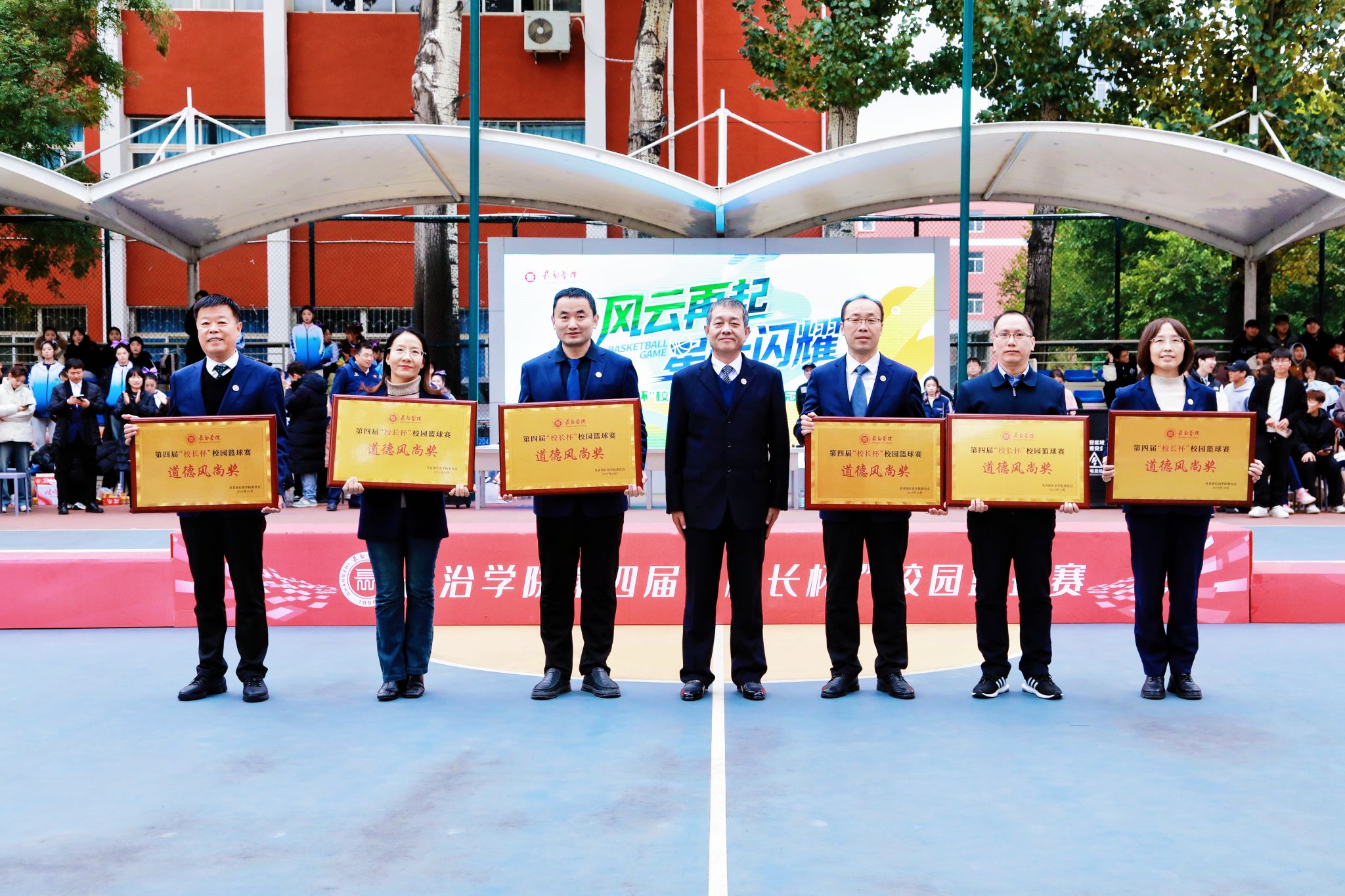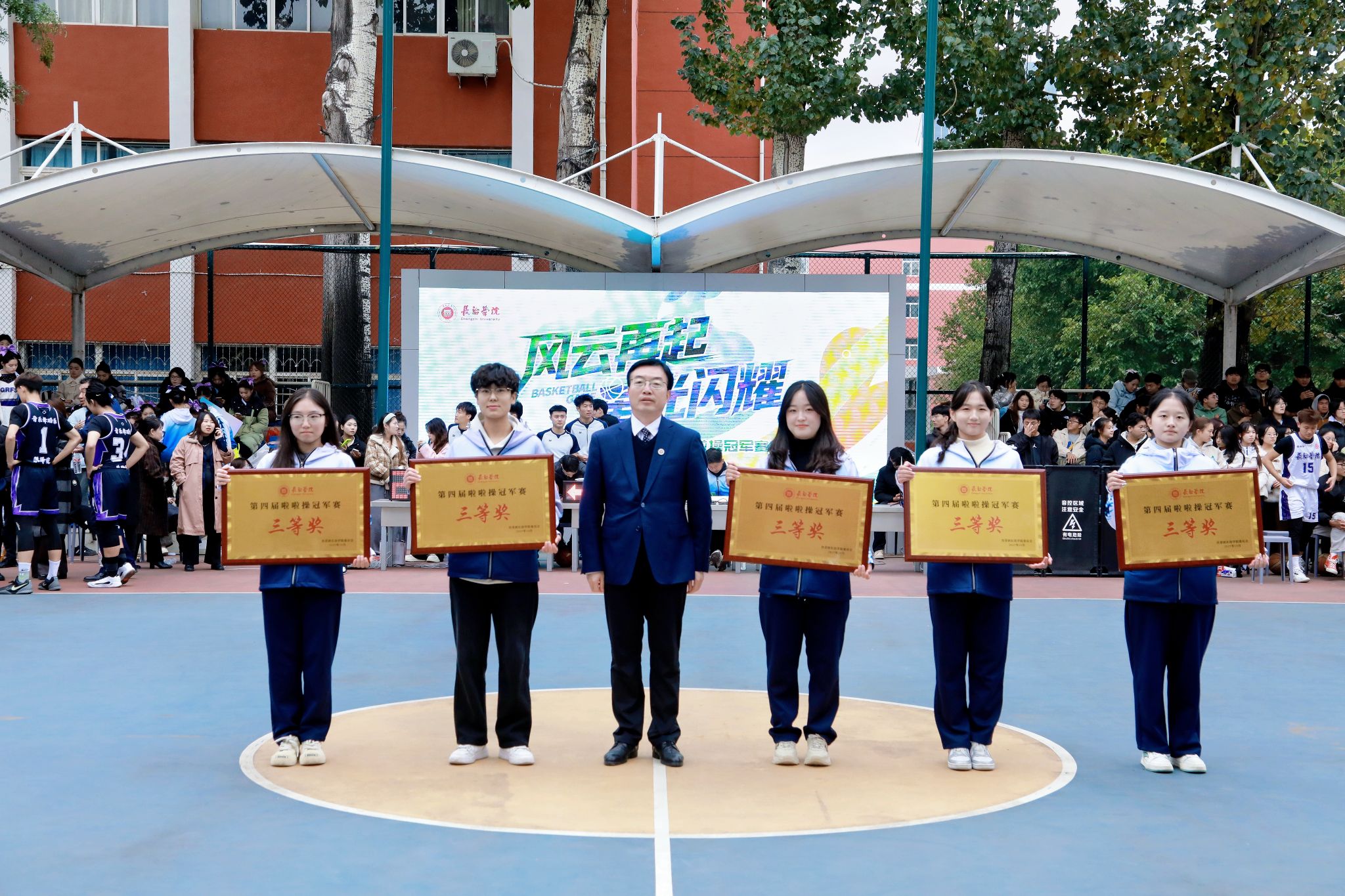 校领导分别为篮球赛冠亚季军队伍及特别贡献奖、优秀组织奖、道德风尚奖获得者颁奖;相关职能部门负责人与体育系党政领导为篮球赛最佳球员、优秀教练员、优秀裁判员代表及啦啦操冠军赛各奖项获得者颁奖。