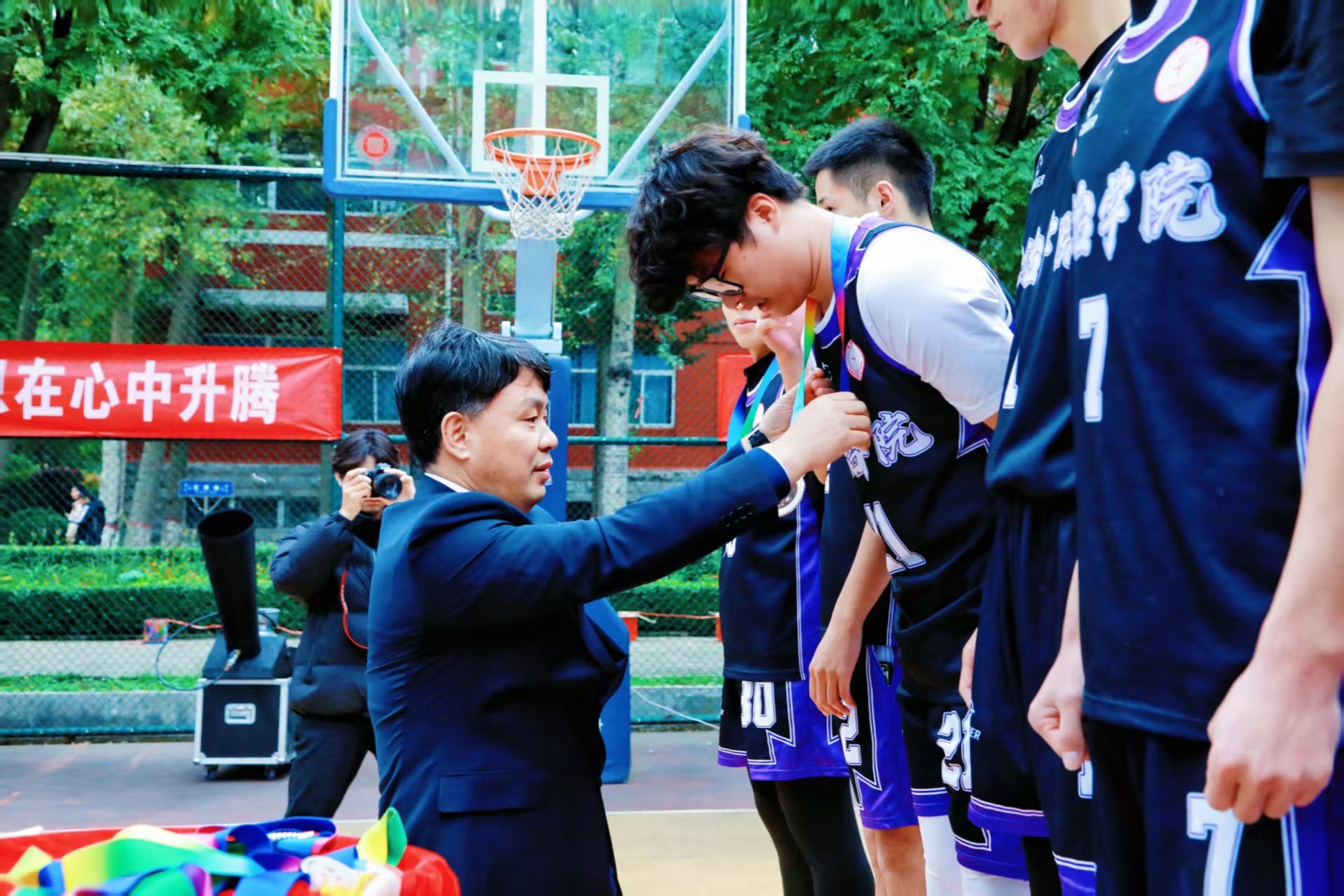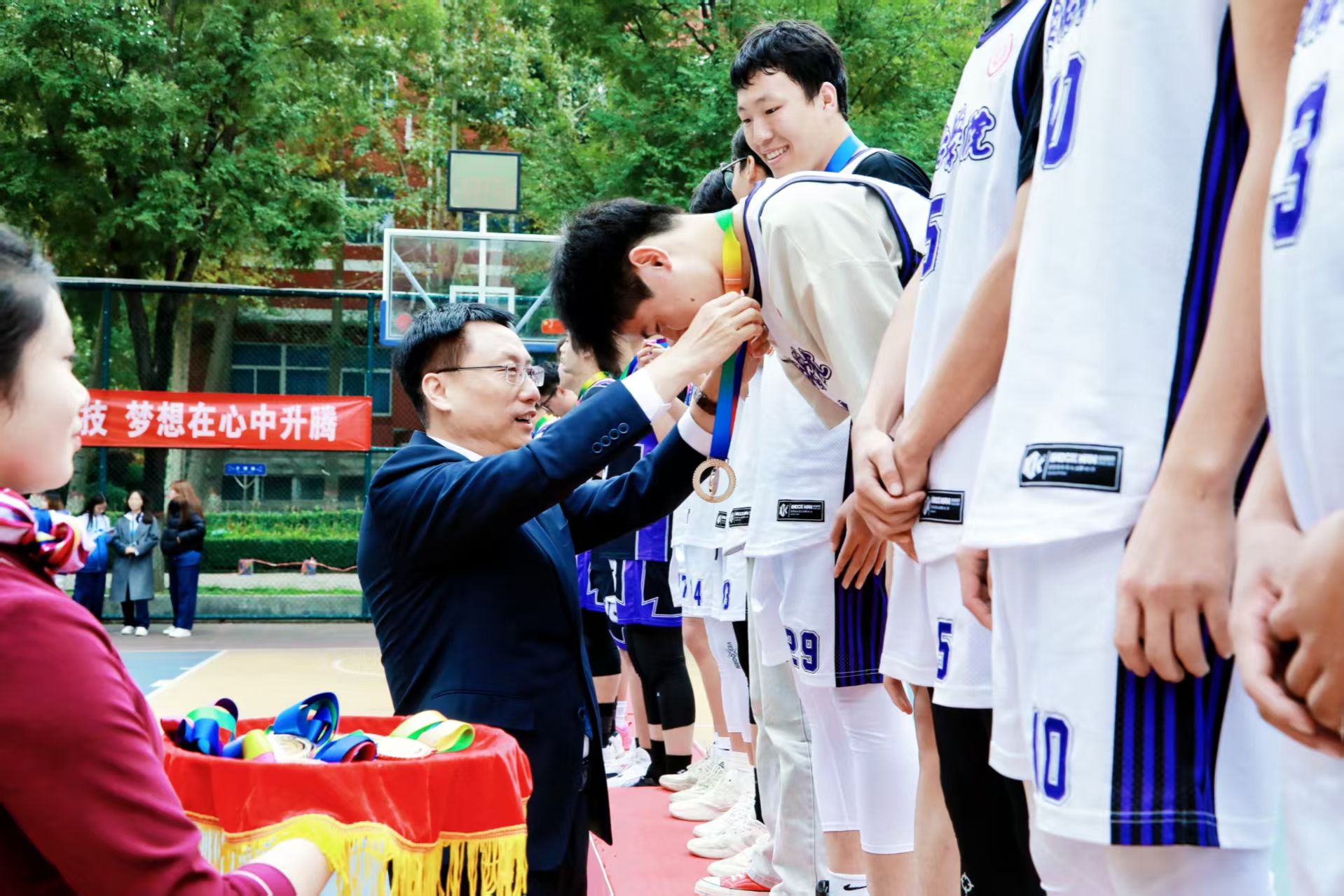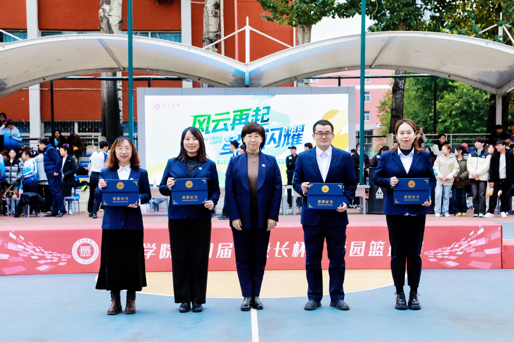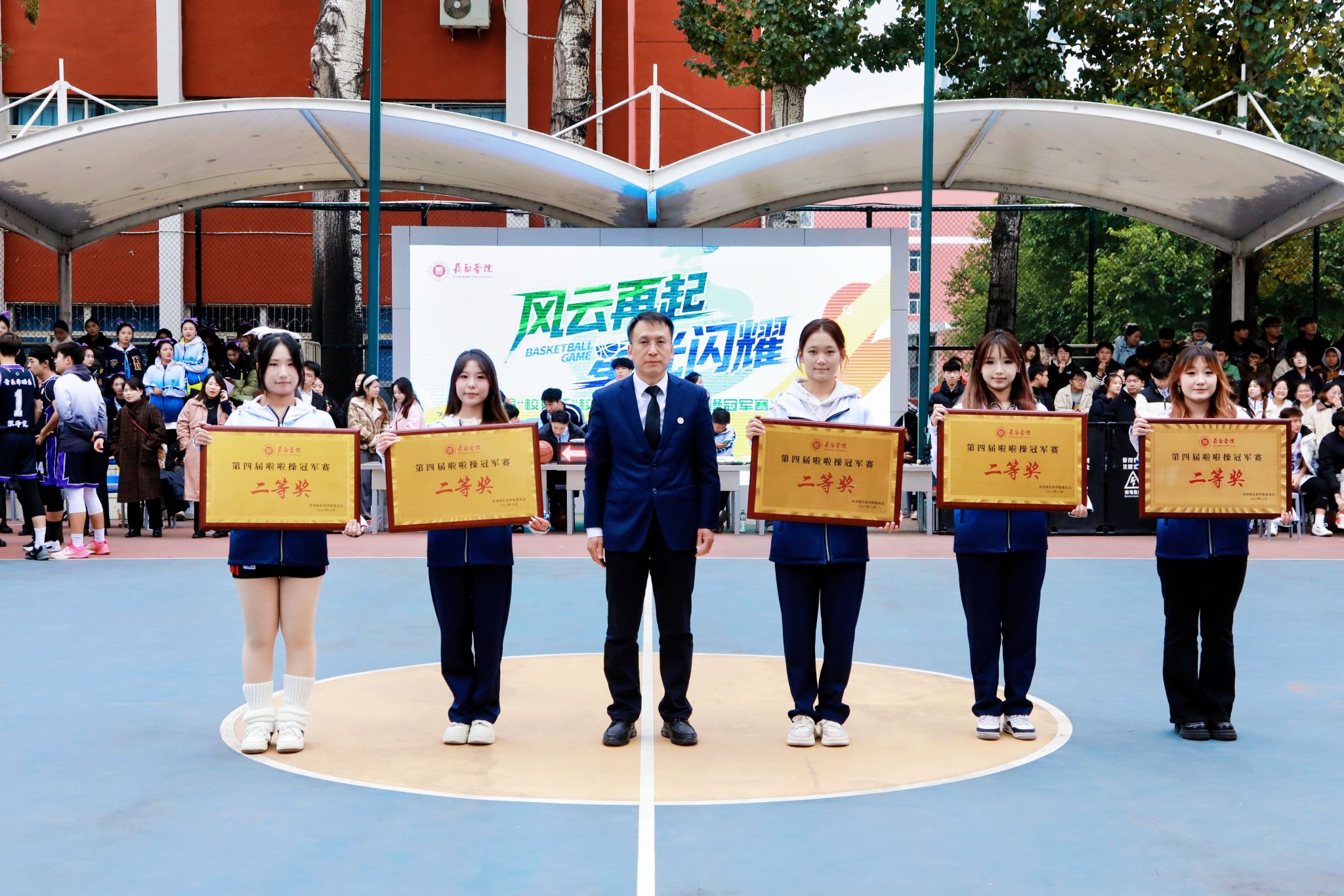 校领导分别为篮球赛冠亚季军队伍及特别贡献奖、优秀组织奖、道德风尚奖获得者颁奖;相关职能部门负责人与体育系党政领导为篮球赛最佳球员、优秀教练员、优秀裁判员代表及啦啦操冠军赛各奖项获得者颁奖。