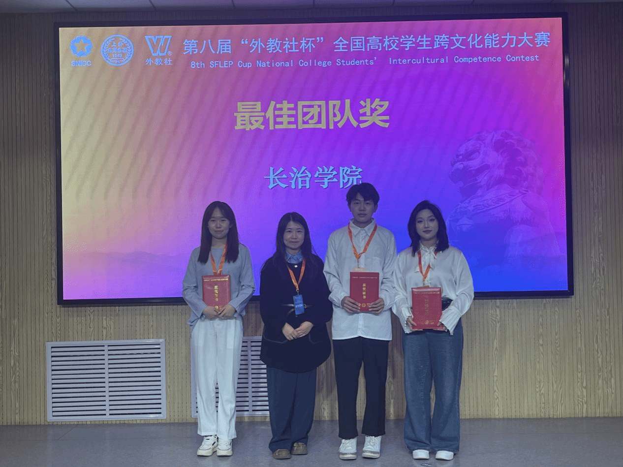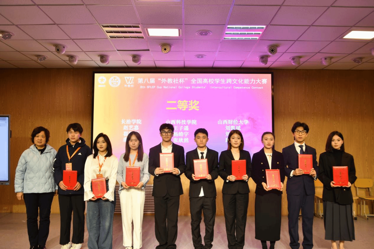 10月25日,第八届“外教社杯”全国高校学生跨文化能力大赛山西赛区决赛在太原师范学院圆满落幕。由beat365学生赵艺嘉、崔雨桐、唐豪均组成的代表队,凭借出色的语言表达能力、扎实的文化素养和默契的团队协作在众多参赛队伍中脱颖而出,斩获山西赛区二等奖和“最佳团队奖”两项荣誉,充分展现了beat365学子良好的跨文化沟通素养和综合竞争力,为学校赢得了荣誉。