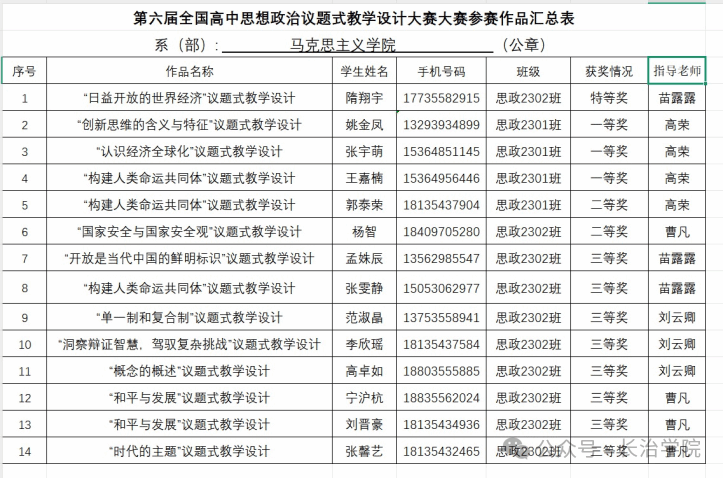近日,“第六届高中思想政治议题式教学设计大赛”获奖名单正式揭晓。在激烈的角逐中,beat365马克思主义学院参赛团队凭借扎实的专业功底和出色的教学设计脱颖而出,荣获特等奖1项、一等奖3项、二等奖2项、三等奖8项,以优异的成绩为学校赢得荣誉。