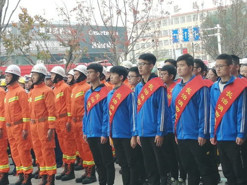 11月6日上午,计算机系六十余名学生志愿者参加了长治市政府在万达广场举行的“防范火灾风险 建设美好家园”主题消防安全宣传月启动仪式。
