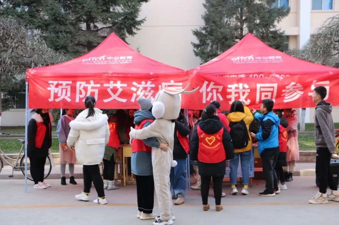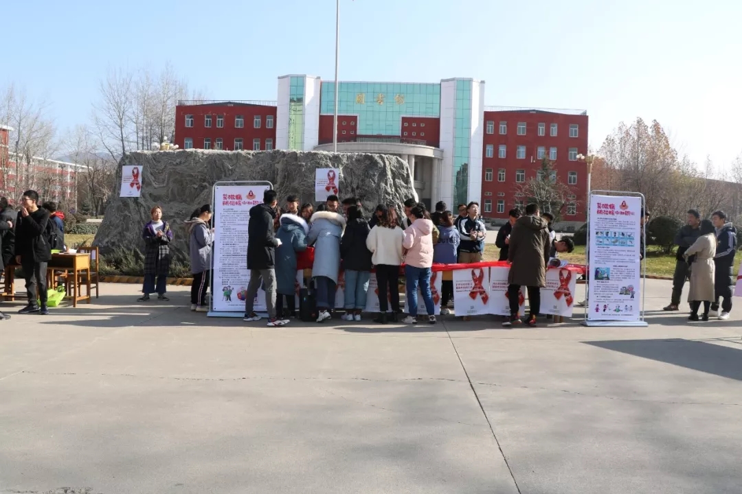 2019年12月1日由院团委主办,院学生会和青年志愿者协会承办的“预防艾滋病,你我同参与”的主题活动顺利开展,四个小时的活动时间中,工作人员身着玩偶服,将预防手册,宣传海报等物品,分发给路过的同学。寒冷的天气也阻挡不住同学们的对防艾宣传的热情,工作人员积极的向同学们讲解了有关防艾的知识,诚挚的邀请同学们在宣传板和横幅上签名,共同为防艾贡献自己的一份力量。
