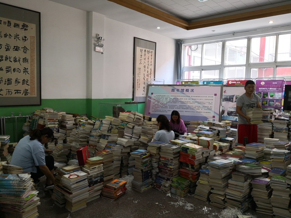 为了尽职履责,图书馆在编和非在编全体工作人员,汇智聚力,上下一心,放弃休息日,冒酷暑,抢抓暑假期间不影响师生借阅的时机,对图书馆空间资源和馆藏图书资源进行优化整合。进行大量的搬迁、整架、倒库、对废旧图书的分拣与整理等工作。具体工作包括: