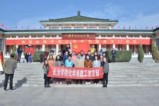 为进一步加强样板支部的组织建设,增强党员的凝聚力,提升党员的战斗力,发挥先锋模范作用,10月31日化学系教工党支部组织全体党员和入党积极分子在八路军太行纪念馆、八路军总部旧址王家峪和砖壁开展了红色教育实践活动。