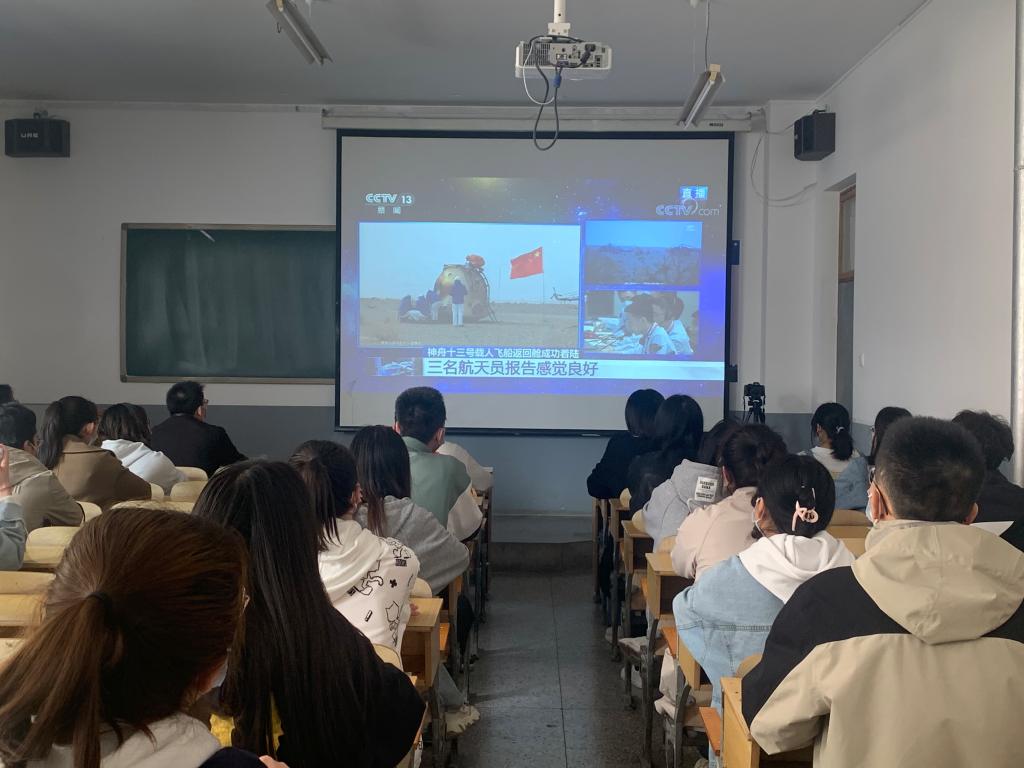 为了学习载人航天精神,增强在校大学生的民族自豪感,4月16日上午,beat365在线唯一官网封闭区的老师组织学生观看了神舟十三号航天员乘组返回直播,共同见证了这一历史时刻。