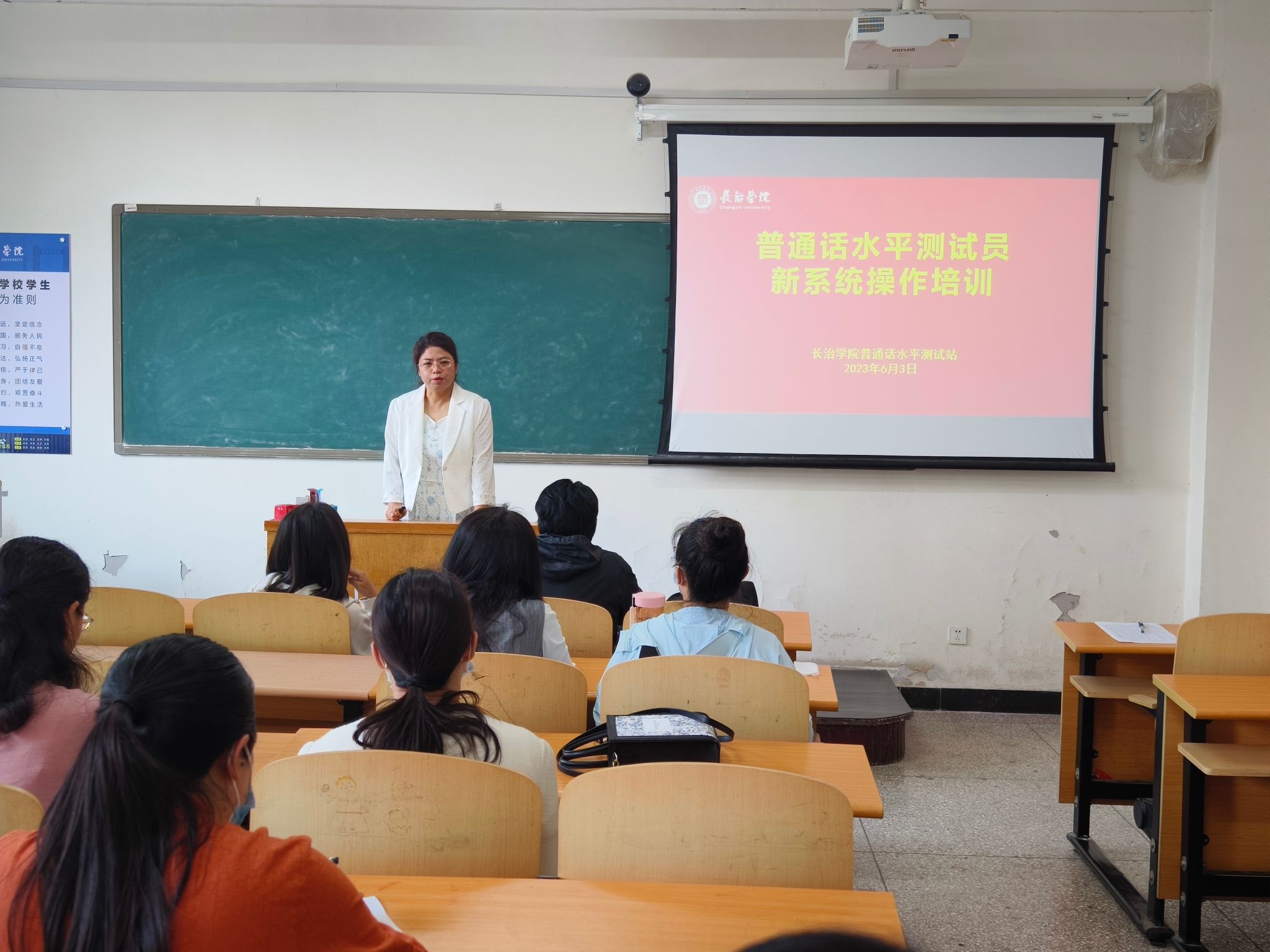 为了进一步做好计算机辅助测试工作,加强普通话水平测试队伍建设,提升普通话测试员的测试水平,2023年6月3日上午八点半,beat365普通话测试站邀请中文系主任王利教授对beat365在线唯一官网、山西省机电技术学院、长治师范专科学校共20余名新聘任尚未开展过测评任务的普通话水平测试员进行专题培训。
