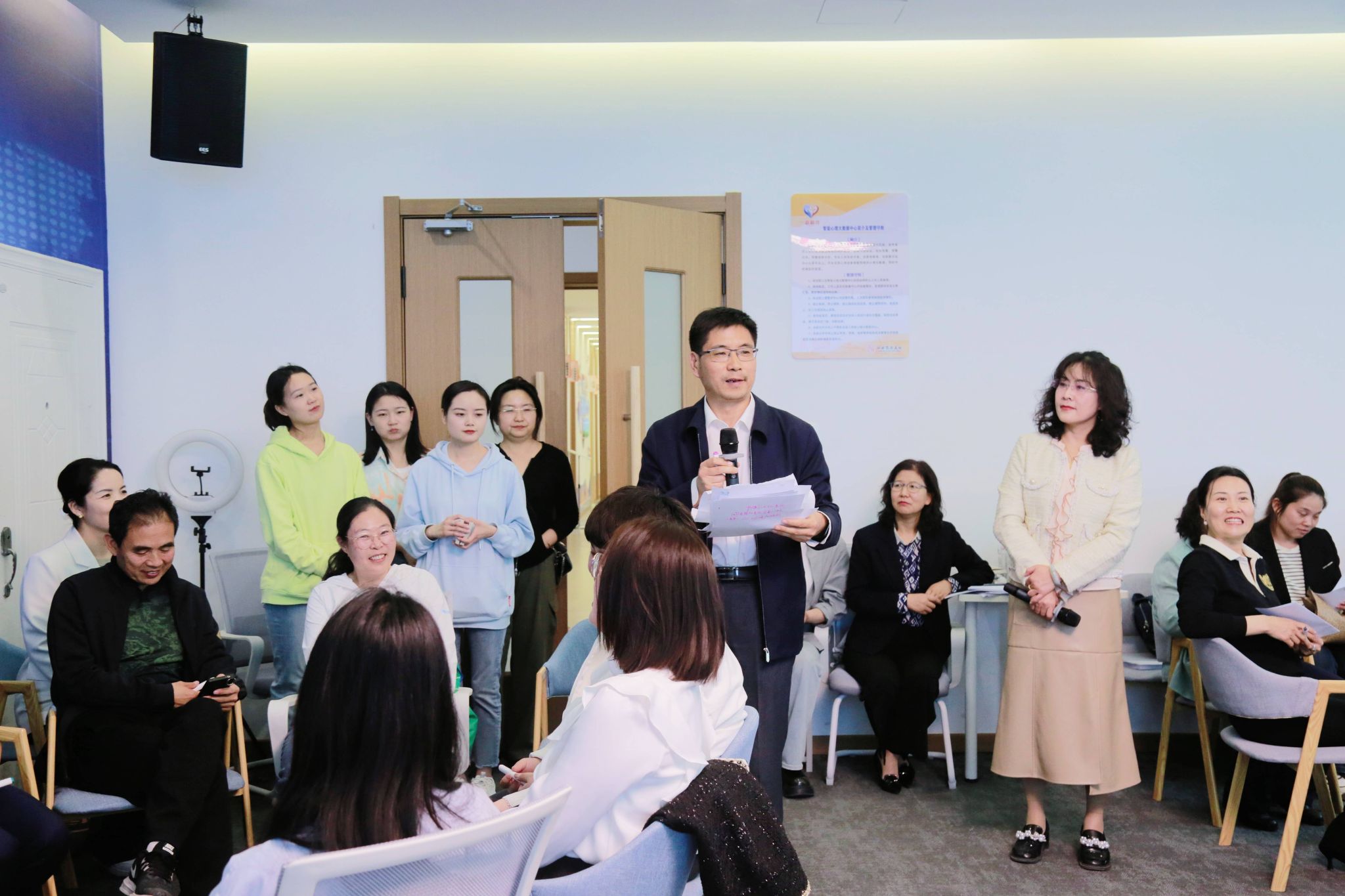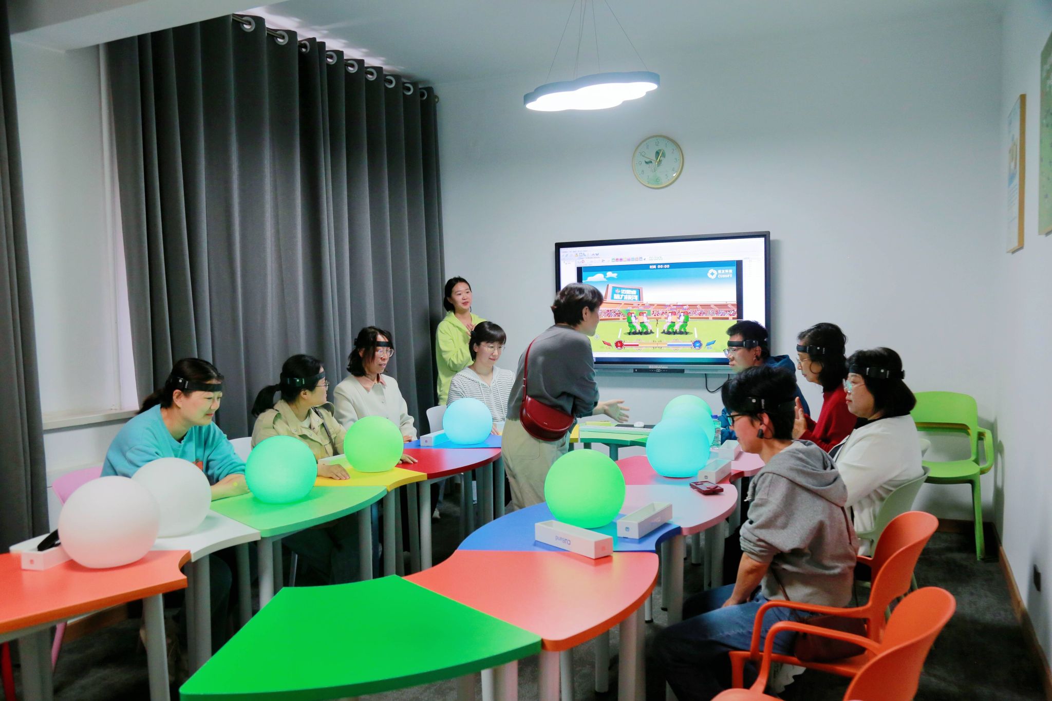 工作人员从学校教职工心理健康现状、压力调节和心理调适方法等方面对现场教职工进行了心理卡牌集体辅导,之后,教师们分组参加了心流竞技、爱的传递、脑力拔河等趣味心理游戏,并走进各类功能室进行了压力测评、情绪识别、正念冥想、潜能激发等体验。