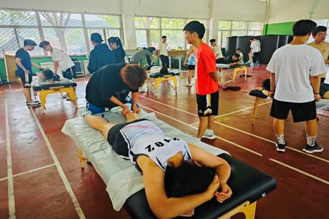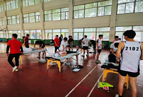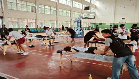为提高校运会比赛质量,避免师生运动损伤的发生,体育系组建了体能恢复志愿服务团队,为参赛运动员提供赛后按摩放松服务。他们不辞辛苦、默默奉献,为比赛的正常进行提供了有力保障。