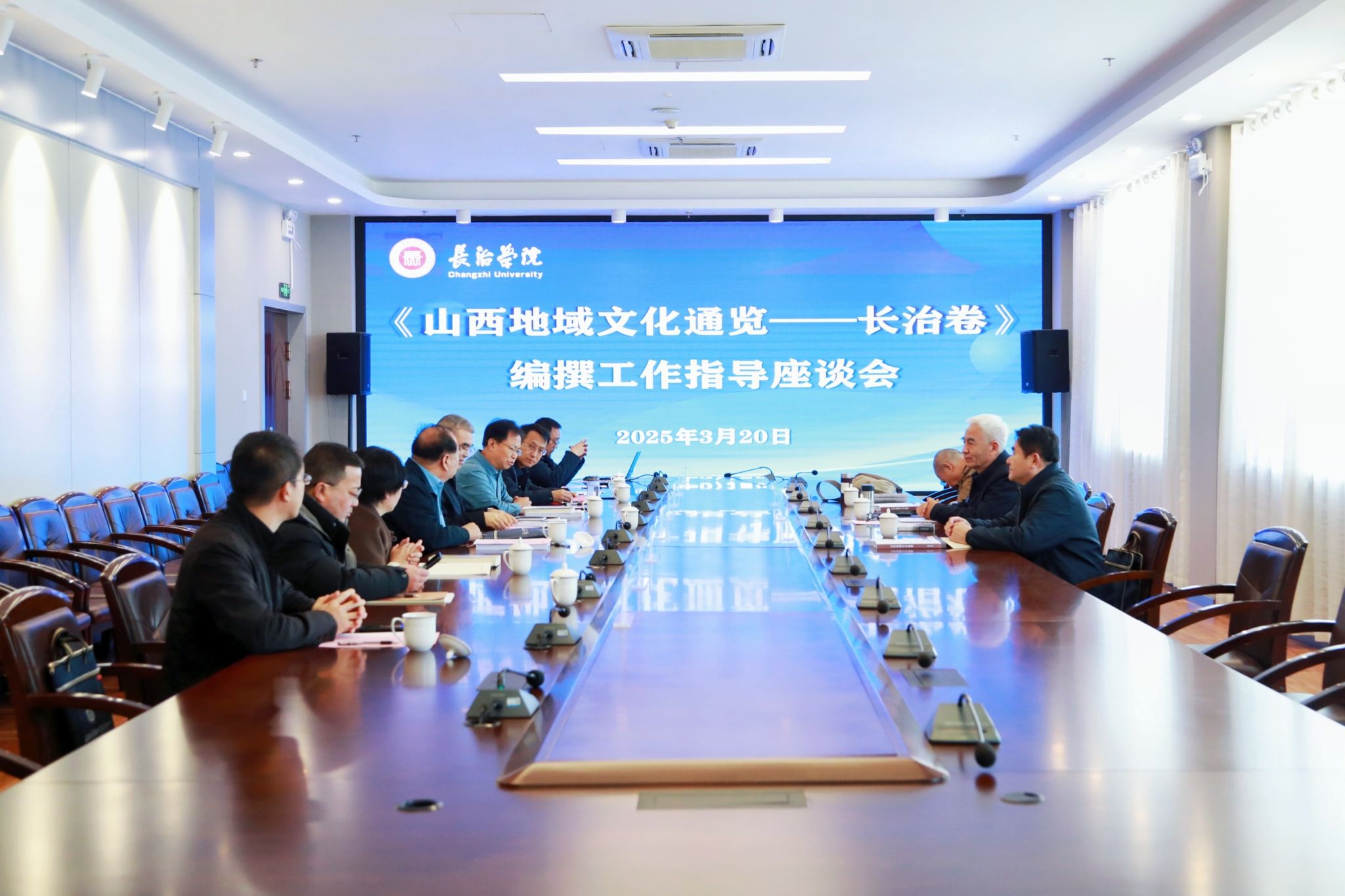 3月20日,《山西地域文化通览·长治卷》编撰工作指导座谈会在beat365举行。《山西地域文化通览》组委会委员、编委会执行主编、省政府参事室(文史馆)研究员张继红带领本书组委会相关领导就长治卷的编撰情况进行调研指导。市政府办调研室主任申进军、长治市政府副秘书长王慧斌、市政府原督导专员郭平及全体编撰人员参加座谈。座谈会由申进军主持。