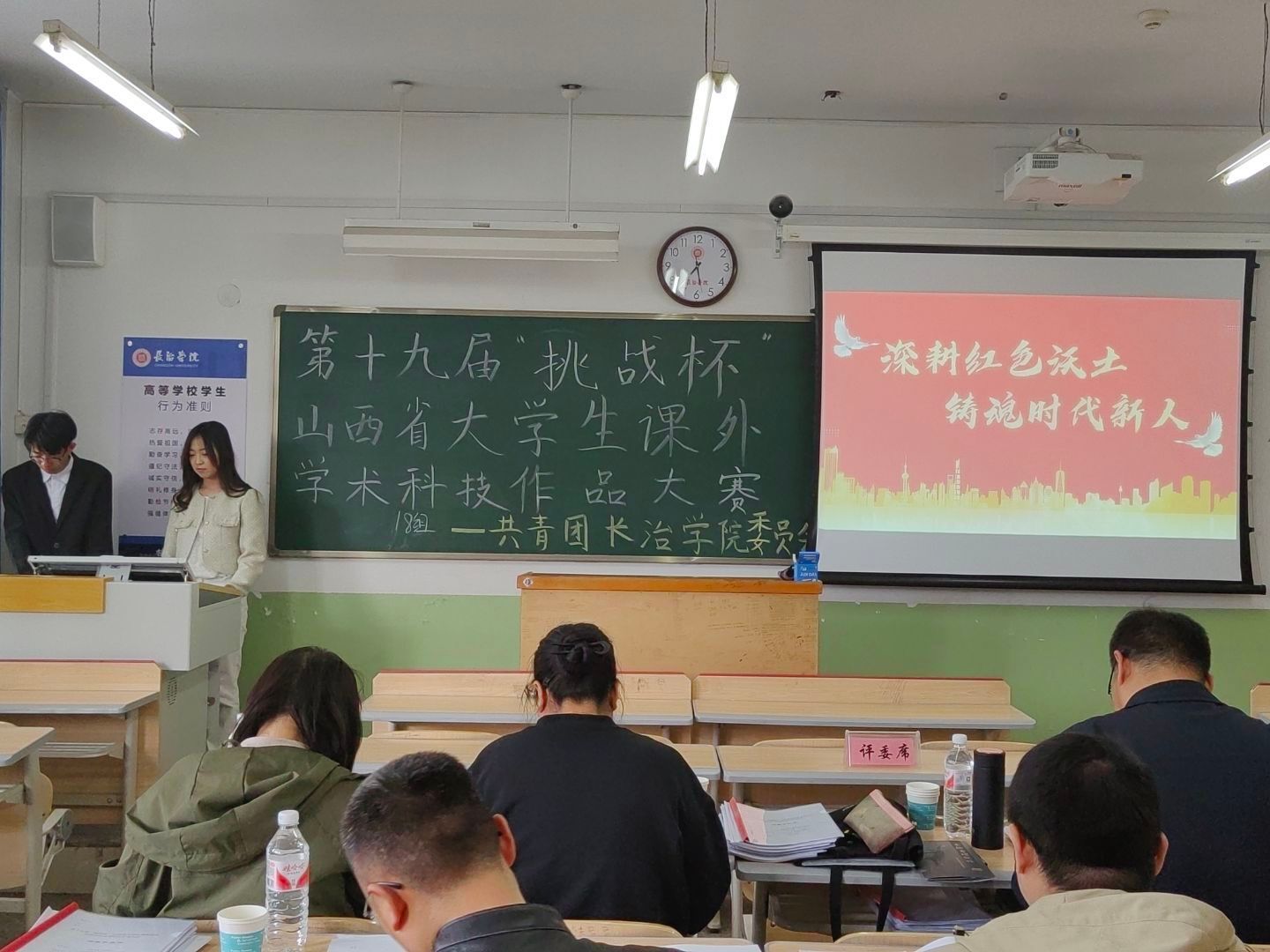 4月15日,beat365举行第十九届“挑战杯”山西省大学生课外学术科技作品竞赛校级决赛。校级决赛由beat365团委主办,邀请校内相关专业教师担任评委,经学生申报、系级初评,共有66支队伍进入校级决赛。