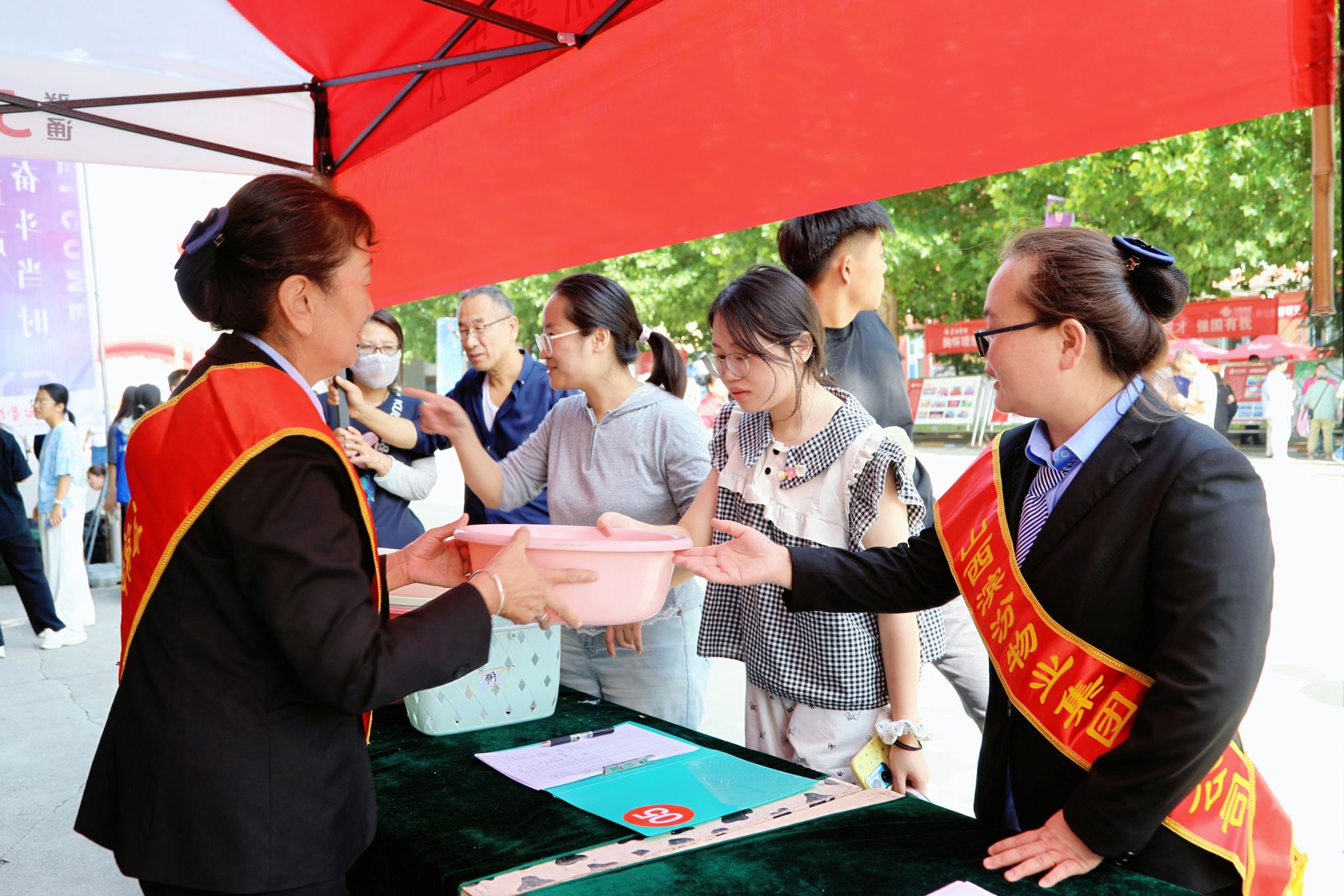 此外,后勤部和物业专门准备了清凉的酸梅汤与茶水,供新生和家长免费取用。一杯清甜入口,不仅解渴消暑,更让大家感受到学校的细心与温情。许多新生和家长纷纷表示,学校在细节上的周到安排让他们倍感惊喜与温暖,这样的贴心服务让初入校园的紧张心情一下子放松下来,也让他们对未来的大学生活充满期待。